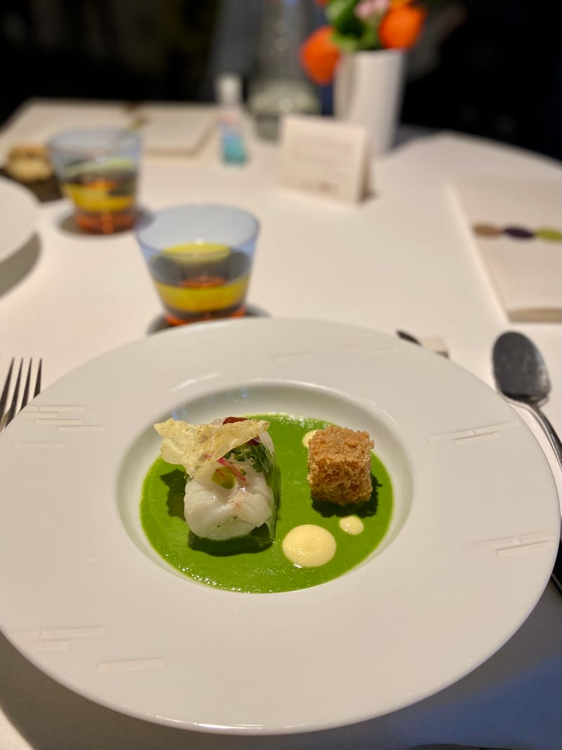 We opted for the Saveurs menu to better discover the chef's cuisine. We started this lunch with delicious appetizers that quickly whet our appetites before getting into the thick of things with the duck foie gras from the Ferme de la Cave, in warm oyster soup, grilled foie gras toast with an oyster leaf. This dish sets the tone with a beautiful enhancement of the terroir and the use of two beautiful products that go perfectly together. We then continued with the long-cooked cod, cress cream with black lemon, pomelos curd, marinated watermelon with Catalan rancio, which was a real favorite for me, especially regarding the perfect cooking of the fish, a real treat!