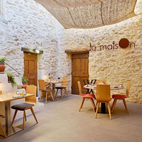 A former winegrowers' home with magnificent stone walls sets the stage for chef Ludovic Davouze's creative cooking at this Gaujac address near Uzès. The kitchen champions local producers through dishes built on unexpected combinations—just-seared tuna arrives with smoked aubergine and miso, a signature that captures the playful inventiveness throughout. The sun-drenched patio makes warm-weather lunches particularly memorable.