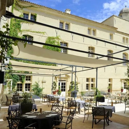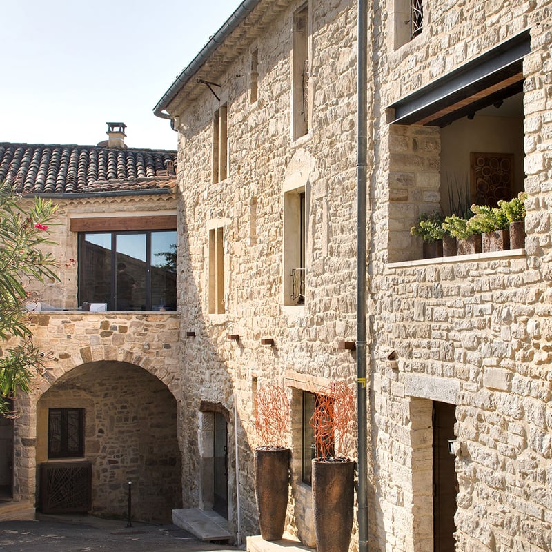 A 17th-century historic monument once belonging to the Chambon de La Tour family, this nine-room Relais & Châteaux property retains its monumental staircase and hidden passages while offering contemporary interiors with soaring ceilings and rooftop views. Beneath Romanesque arches, a spa with Roman bath and hammam provides subterranean refuge. Chef Christophe Ducros holds a Michelin star at La Table d'Uzès, serving Provençal market cuisine on the summer terrace.