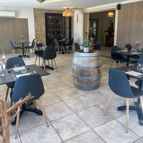 Hugo Mercier honed his craft at La Table du Castellet under Christophe Bacquié and Fabien Ferré before settling near Uzès, where his commitment to house-made preparations—every sauce, every ice cream—defines the kitchen's character. The weekly lunch menu tracks local markets closely, while monthly dinner menus venture into more ambitious territory: roast veal with porcini and chestnut cream, or candied pear with pistachio moelleux and verbena mousse.
