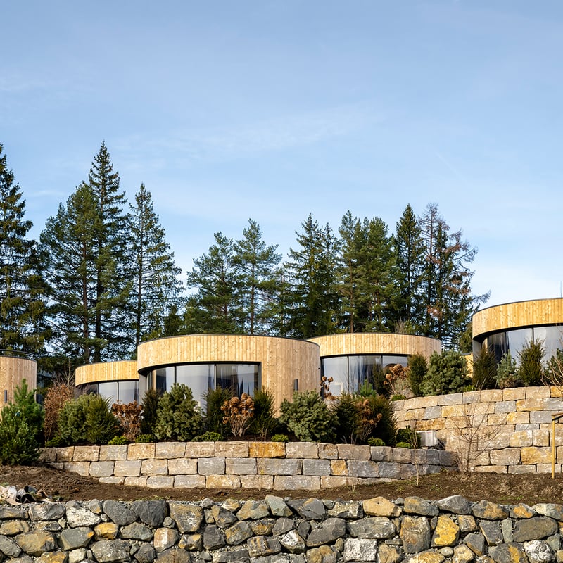 Apartment-style chalets at this 19-room Oberstaufen retreat feature warm wood, natural stone, and personal fireplaces—a refined alpine vocabulary suited to extended mountain stays. Private balconies frame 360-degree panoramas, while design kitchens encourage self-sufficiency. Skiers benefit from on-site equipment rental; warmer months bring the seasonal outdoor pool and sauna. A property calibrated for active travelers who want comfort without ceremony.