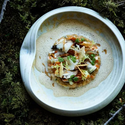 A private road winds up to the Falkenstein peaks, where chef Simon Schlachter holds a Michelin star at Boutique Hotel Blaue Burg. His sharing-focused set menu arrives as intricate small plates layering subtle Asian inflections over regional Allgäu foundations. The intimate dining room, overseen by his partner as maître d', rewards the dramatic ascent with cuisine as striking as the Alpine panorama outside.