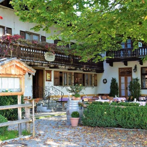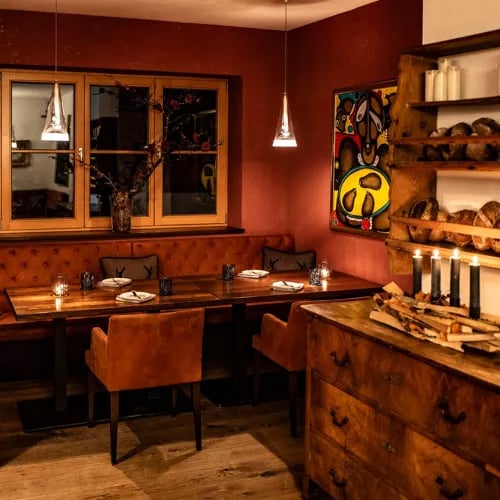 Chef Andreas Hillejan earns a Michelin star for his refined reinterpretation of Bavarian pub classics at this informal dining room in Mittenwald, beneath the Karwendel peaks. Two tasting menus—'Wirtshaus mal anders' (available vegetarian) and 'Heimat'—showcase his approach, while à la carte options like fish soup and Wiener schnitzel satisfy traditionalists. The painted facades of the violin-making town wait just steps away.