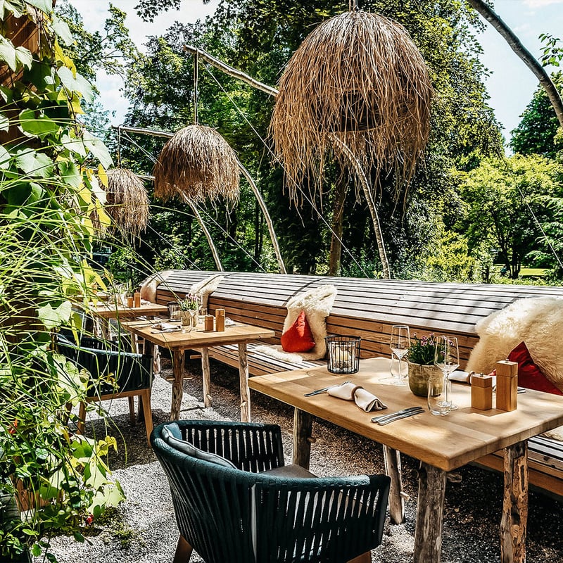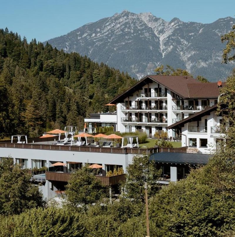 This 20-room alpine retreat at the foot of the Ammergau Alps wraps guests in traditional Bavarian comfort—wooden beamed ceilings, tactile fabrics, mountain views from every window. The on-site Ammergau Maxbräu brewery pours house-crafted beers in a restaurant that spills onto a shaded garden facing the peaks. After hiking or skiing, a spa with Finnish sauna, steam room, and traditional hay bath restores weary limbs.