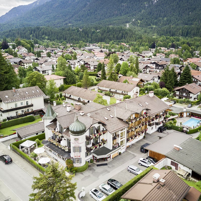 A cable car ascent delivers guests to this 33-room mountain retreat perched above Garmisch-Partenkirchen, where panoramic Alpine views frame every experience. Contemporary rooms pair traditional pine woodwork with modern comforts, while Weingart's restaurant serves refined four-course Bavarian menus. The wellness facilities extend beyond typical spa offerings to include comprehensive healthcare screenings alongside saunas, Turkish bath, and an outdoor pool set within landscaped gardens.