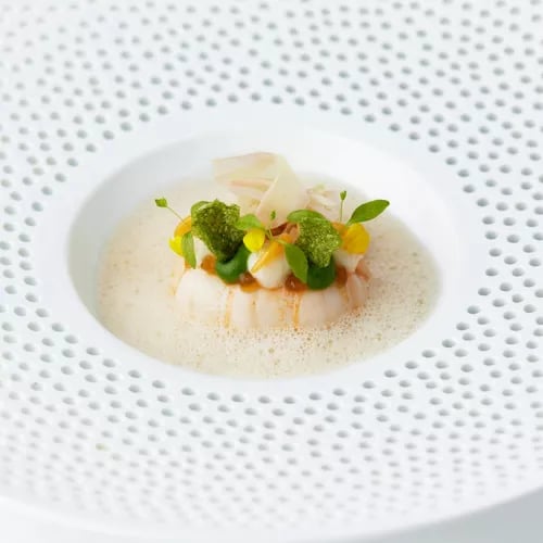 Within the alpine grandeur of Schloss Elmau, chef Christoph Rainer holds two Michelin stars for cuisine that channels his extensive travels through Asia. Japanese kokeshi dolls and refined tableware set a contemplative mood, while dishes like Tristan rock lobster from the binchotan grill demonstrate his commitment to pristine ingredients. Sommelier Marie-Helen Krebs guides diners through an impressive sake selection with understated expertise.