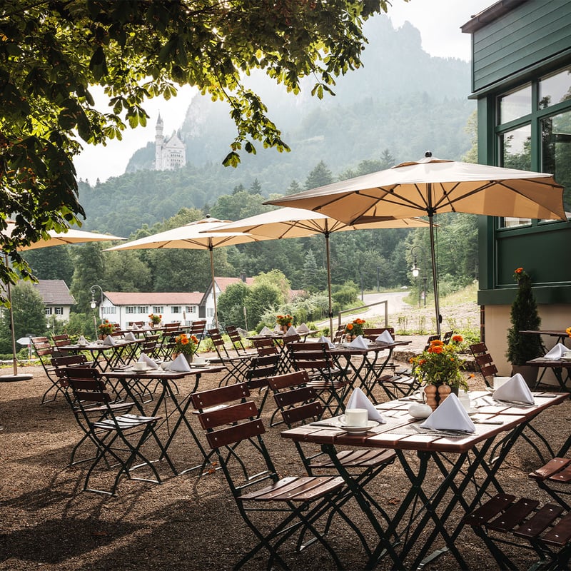 Three heritage hotels and two contemporary wings form an architectural dialogue at the foot of Neuschwanstein Castle, with rooms offering direct views of either the famous fortress or neighboring Hohenschwangau. The extensive spa features an indoor pool and sauna, while dining spans traditional Bavarian fare at Schloss Bräustüberl's beer garden and refined farm-to-table Alpine cooking at Lisl. Pet-friendly throughout.