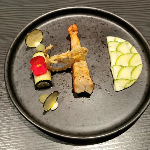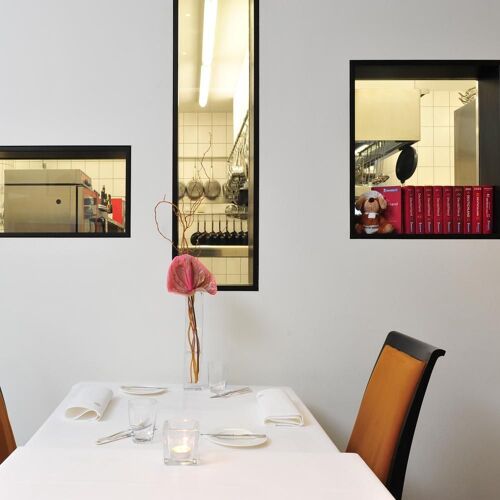 Chef duo Lisa Angermann and Andreas Reinke helm this one-Michelin-starred address with infectious ease, presenting their evolving 'Frieda En Vogue' menu in a personal envelope at each table. The ingredient-driven cooking—cod paired with ox tongue vinaigrette, venison lifted by artichoke cream and lardo—delivers precise, confident flavors. A chic bistro setting with terrace and orangery keeps the atmosphere relaxed yet refined.