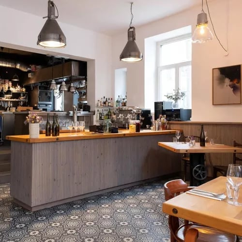 Behind the open kitchen at this one-Michelin-starred address, chefs assemble four and five-course menus with visible precision and flair. The rustic-bistro setting—striking lamps, informal warmth—belies the sophistication on the plate: regional venison arrives with artichokes and blueberries, Atlantic monkfish with tomatoes and lovage. Thoughtful wine pairings complete an evening of considered gastronomy in Leipzig's Plagwitz quarter.