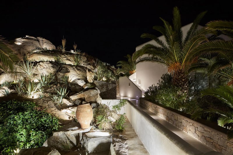 Facing the sacred island of Delos from Agios Ioannis beach, this five-acre Cycladic retreat enforces a no-water-sports policy that preserves genuine tranquility. A stone amphitheatre hosts morning yoga sessions, while the spa offers Turkish bath rituals and heated-stone treatments. Suites feature private Jacuzzis and terraces; some include plunge pools with unobstructed Aegean views. Evening dining at Nama transitions to stargazing through the Bolla Bar's telescope.