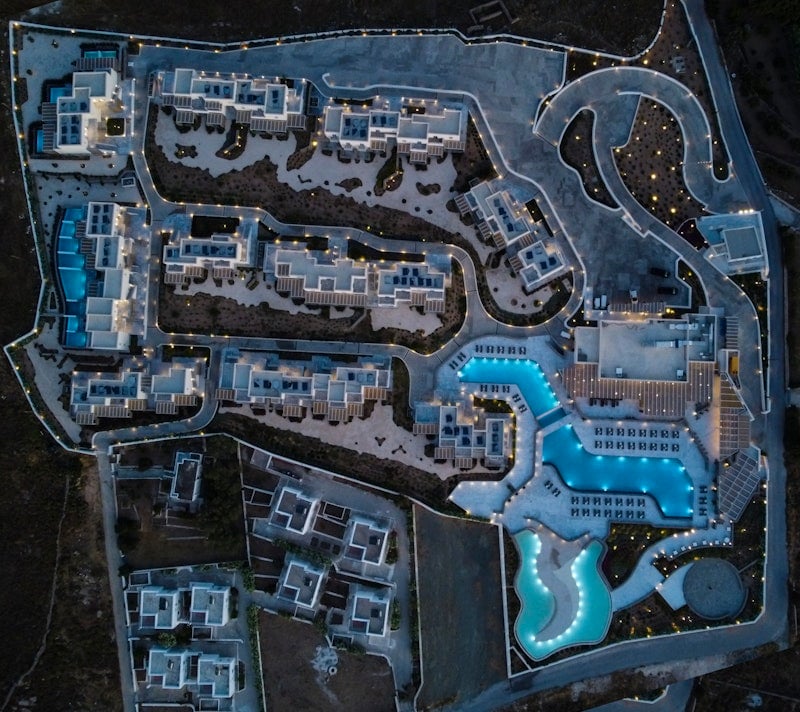 The island's geography creates natural divisions. The western coast catches the meltemi winds that draw kitesurfers to Golden Beach, while the eastern shores around Logaras and Piso Livadi offer calmer waters and a quieter pace. Between them, the hilltop village of Lefkes — once the island's capital during pirate-plagued centuries — provides the template for what Parian hospitality looks like when stripped of pretension: stone-walled courtyards, family-run tables, afternoon light falling through bougainvillea. The hotel scene here reflects this duality, ranging from converted sea captains' houses in Naoussa's backstreets to minimalist retreats on remote headlands.