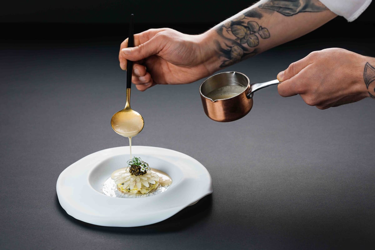 In 2024, the Arany Kaviár Restaurant welcomed a rising star of gastronomy, Bence Molnár, to take the helm of its kitchen. Trained in the demanding arena of Michelin-starred restaurants and Bocuse d'Or competitions, Bence, at just 24 years old, has quickly made a name for himself among the new wave of talented chefs in Hungary. Before joining Arany Kaviár, he honed his skills at Budapest's Michelin-starred Bábel and as sous-chef at Essência Éttrem under the direction of Tiago Sabarigo. His recurring and noteworthy participation in the Bocuse d'Or, culminating in his performance in the national finals, testifies to his creativity and ambition.