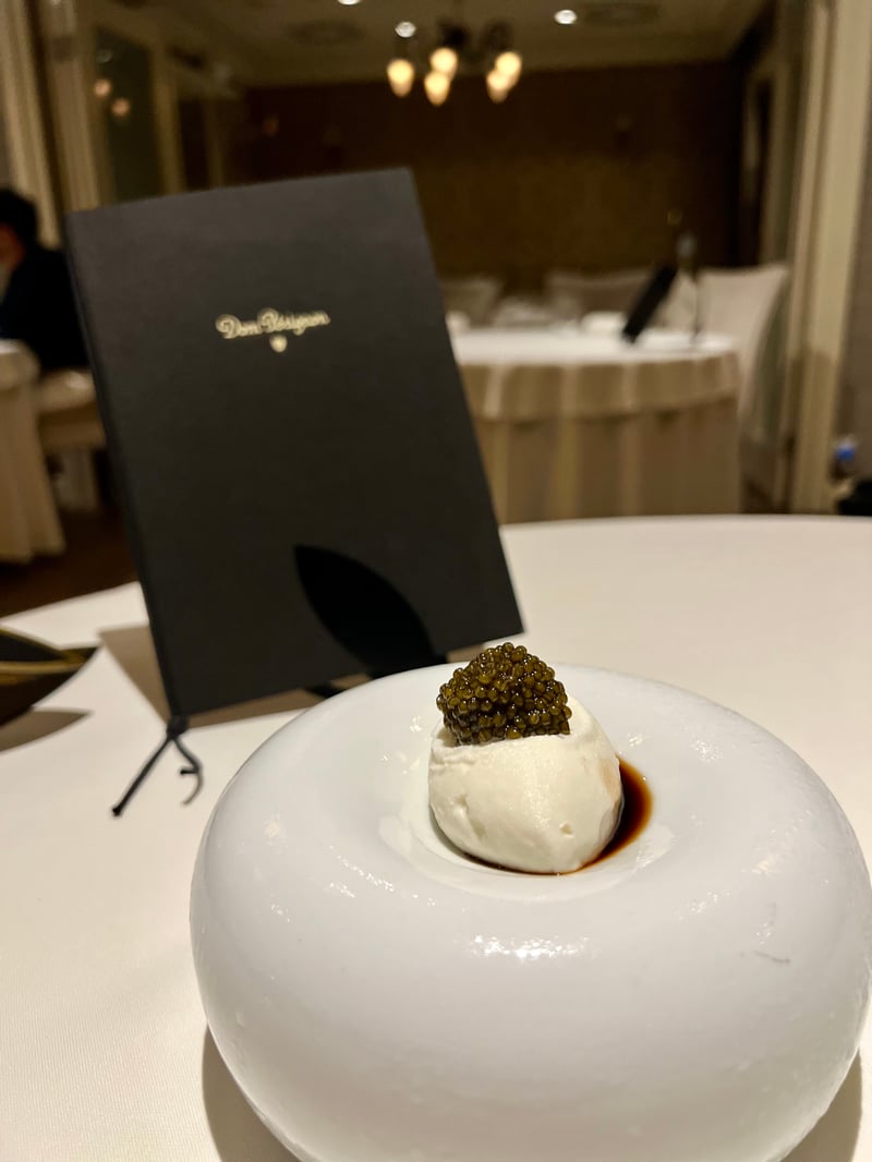 We began our meal with petits fours that combined beauty and flavor, with a remarkably aesthetic presentation that awakened our taste buds and immediately set high expectations for this dinner. We could not resist the call of caviar, a true specialty of the restaurant. We opted for a tasting of five varieties of caviar (trout eggs, wild salmon Keta eggs, Malossol Siberian sturgeon caviar, Malossol Osetra caviar, and Kaluga imperial caviar), served with traditional blinis and various condiments that enhanced our taste experience. This selection allowed us to easily compare the different flavors.