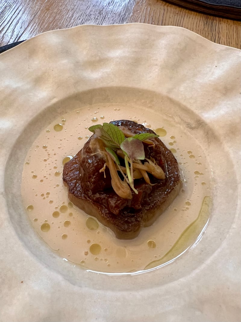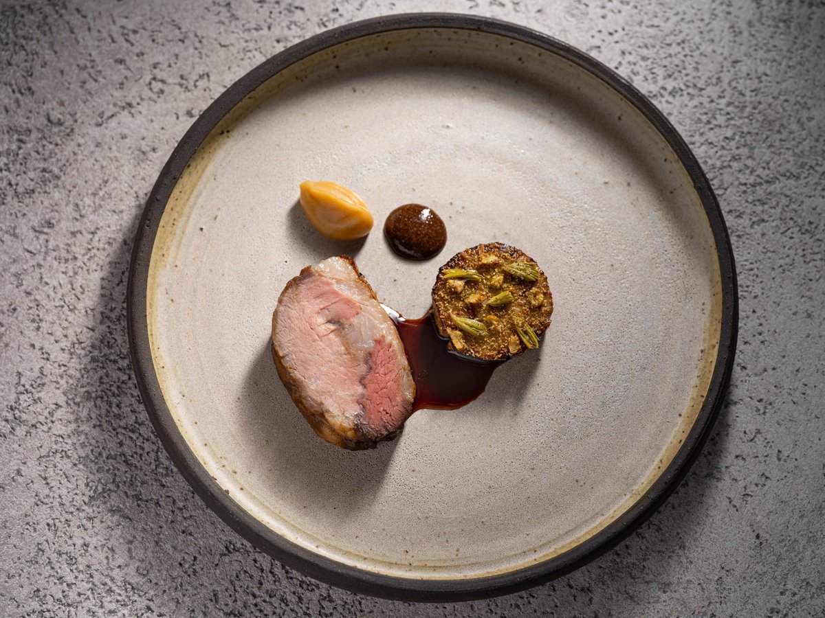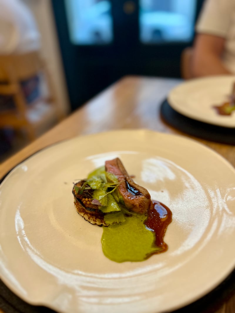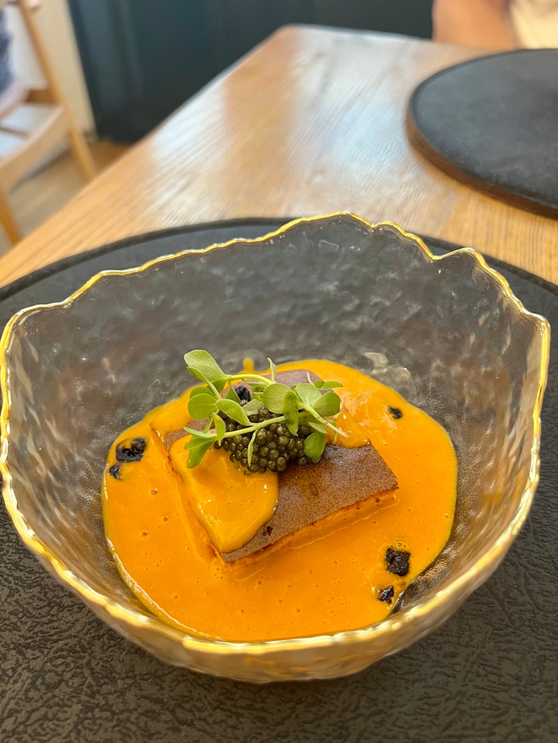 By opting for the 'La Grande Région' menu, we were guided through a panorama of dishes that boldly revisited Hungarian classics. The dinner began with a captivating appetizer of eggplant, acacia, and tomato, followed by a partridge soup enriched with peas and chourout (fermented cheese), which complexified our palate.