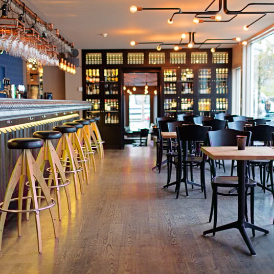 Three friends run this single-storey dining room on a quiet street near the House of Collections, where an industrial aesthetic—high ceilings, central bar, striking trapezoid window—draws Reykjavik locals in unusual numbers. The market-driven menu stays deliberately concise: expect dishes like halibut paired with sweet potato gratin and miso, served in the laid-back atmosphere that earned Hosiló its loyal following.