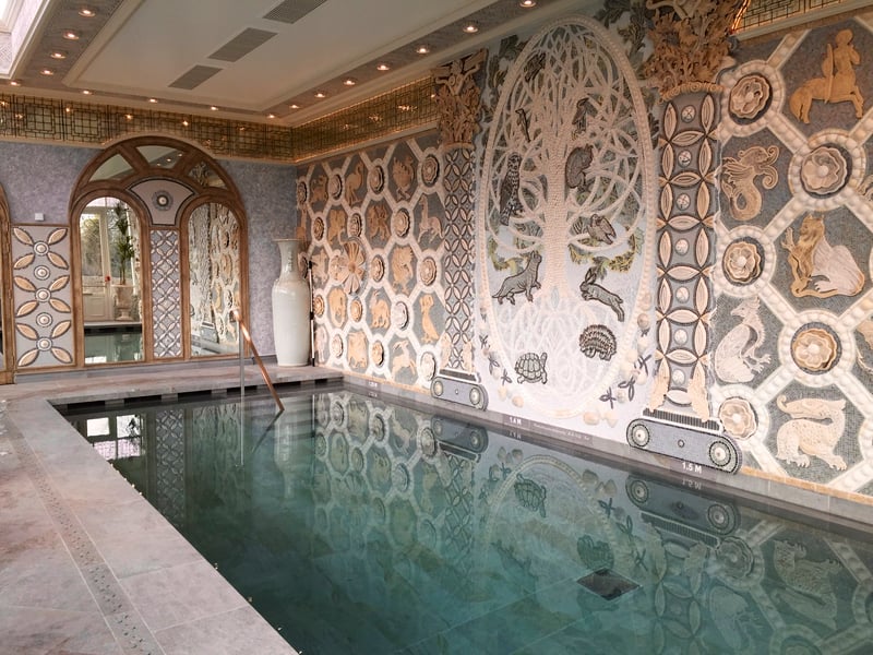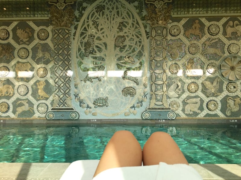 After all these intense activities, I advise some relaxation in the hotel spa. 5 treatment rooms, a fitness room with a view that will make you want to do some sport but, most importantly, an indoor swimming pool ! In addition, we are grateful that we can enjoy this place with its peace and quiet as we are alone ! The decor is superb, a striking touch which perfectly suits the castle and everything is in exquisite taste ! Look for example at the 3 chandeliers and the wall which represents the tree of life ! Another advantage : the swimming pool is quite warm, which is often a weakness in many spas !