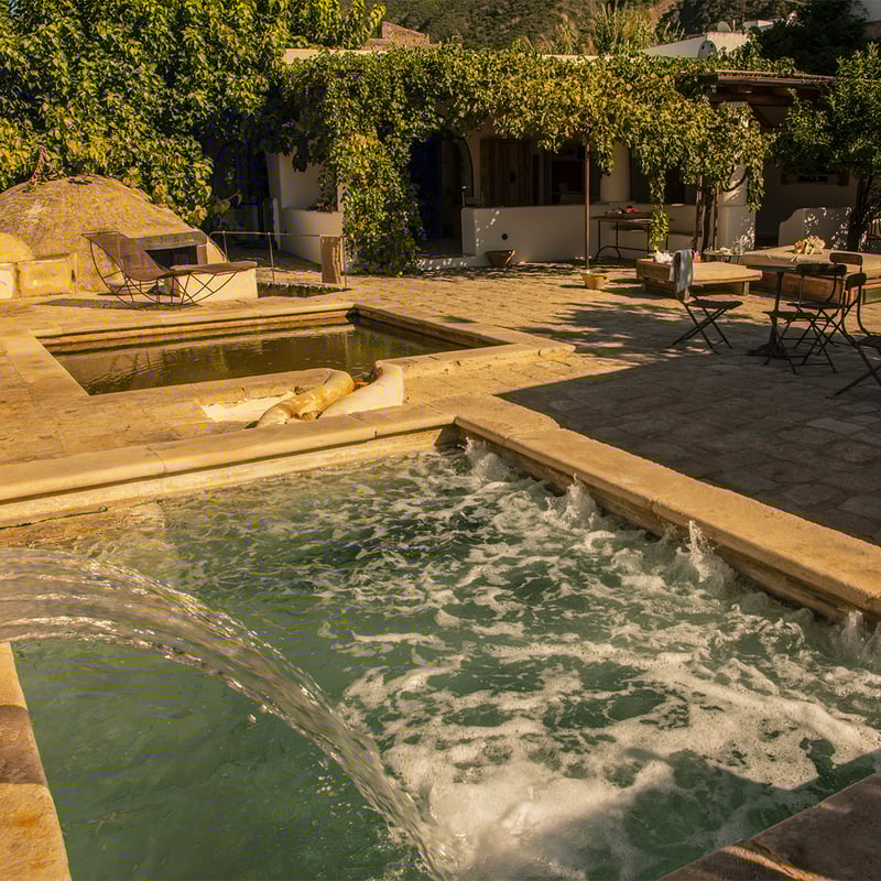 A massage pavilion scattered through the gardens of Capofaro Locanda & Malvasia, Spa Leni offers treatments amid fragrant greenery on Salina's volcanic slopes. Expert therapists work in open-air settings where guests can later drift to the freshwater pool, views stretching toward Stromboli's smoking cone and Panarea's silhouette. Yoga retreats extend the wellness program, grounding body and mind against the Aeolian seascape.