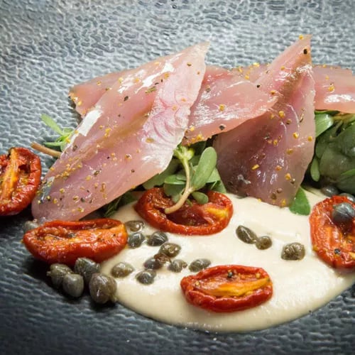 As sunset ignites the Aeolian horizon, Chef Davide Guidara presents his singular vision of plant-based gastronomy—a term he prefers over vegetarian or vegan labels. The surprise tasting menu showcases winter produce from his own garden, transformed through fermentation, maceration, and pickling, paired automatically with house-made kombucha and herbal cordials. Two Michelin stars and a Green Star confirm the achievement.