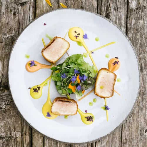 Glass walls frame the Dolomite panorama at this one-starred table inside Badia Hill hotel, where chef Marco Verginer crafts two distinct tasting menus. One follows the seasons; the other channels pure creative instinct, threading Alto Adige Wagyu and garden vegetables through dishes that drift between mountain tradition and Mediterranean brightness. The cooking is elaborate yet grounded, suited to travelers seeking alpine gastronomy with technical ambition.