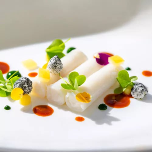 Perched within Palazzo Avino, Rossellinis commands one of the Amalfi Coast's most dramatic panoramas, its terrace sweeping toward Minori and the glittering sea beyond. Chef Gianni Vanacore's Michelin-starred seafood arrives with precision and restraint—regional ingredients rendered in compositions of deliberate lightness. The evening ritual begins below in the garden: champagne, inventive canapés on local ceramics, sommelier Luigi Nitto guiding through an expansive cellar.