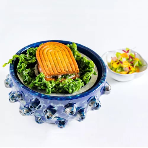 Perched above the Amalfi Coast with sweeping sea views, Bluh Furore brings one-Michelin-star dining to the cliffs of Furore. Executive chef Vincenzo Russo works under the guidance of celebrated three-star chef Enrico Bartolini, delivering modern Campanian cuisine with signature creations like the half-fried prawn. The minimalist white dining room suits travelers seeking refined coastal gastronomy without theatrical excess.