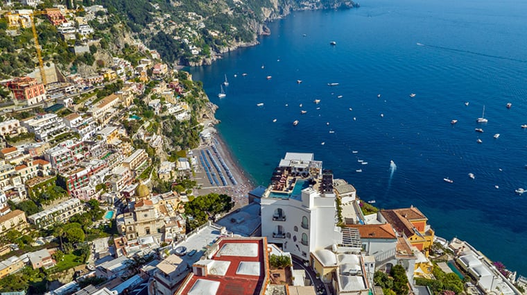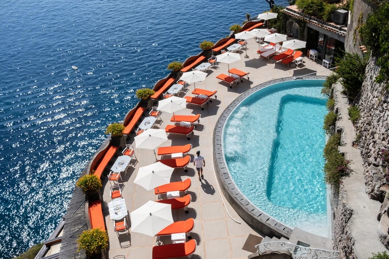 A former private residence carved into Positano's steep cliffs, Hotel Villa Franca pairs Old World architecture with bold contemporary art throughout its 38 rooms. The Gold Sky Pool Club ranks among the town's highest, offering black-lounger glamour above the Mediterranean. Chef Savio Perna's Li Galli restaurant delivers sunset-lit dishes like blue lobster gnocchi, while O'Spa's Turkish bath and jacuzzi provide clifftop restoration. Adults-only, with a private yacht for coastal exploration.