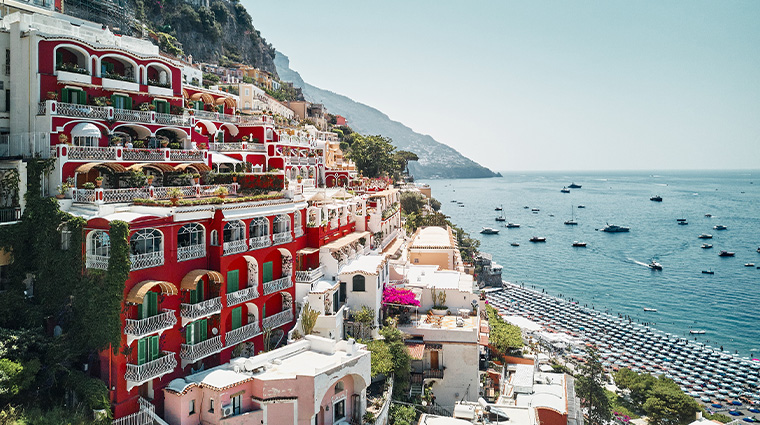 The cherry-red façade of this eighteenth-century Marchese Sersale summer house rises from Positano's vertical labyrinth, still family-run after seven decades. Glazed tile floors and scalloped windows frame antiques collected across generations, while the heated lap pool surveys the town's pastel amphitheater. Gae Aulenti's teak-and-marble spa offers lemon-infused massages; the seafood restaurant beneath bleached domed ceilings serves impeccable vongole. Grown-up, unhurried, unmistakably Italian.