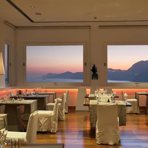 Steps from Amalfi Cathedral, Sensi occupies an 18th-century palazzo where contemporary design meets historic architecture in the coast's signature azure and white palette. The Michelin-starred kitchen channels Mediterranean waters into refined seafood preparations, though carnivores find thoughtful alternatives on the menu. A polished setting for travelers seeking gastronomic precision within the drama of the Costiera.