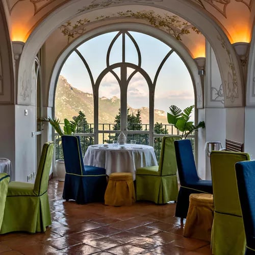 Perched within Villa Cimbrone's legendary gardens, this one-starred restaurant commands sweeping views of the Gulf of Salerno, wisteria cascading above its terrace as the Cilento mountains fade into distant haze. The Campanian chef works with exceptional local produce, delivering Mediterranean plates that carry the region's signature intensity—traditional preparations alongside dishes reimagined with contemporary precision. Advance reservations are essential for this deeply romantic setting.
