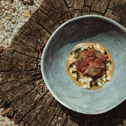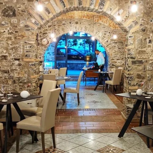 Down a narrow alleyway behind Santa Maria di Castellabate's beach, a former warehouse for smoking meats and drying Cilento figs now houses Chef Antoni Tafuri's regional kitchen. Stone-vaulted ceilings create an intimate atmosphere, while a plant-filled terrace offers al fresco dining. The menu spans tasting menus—including thoughtful vegetarian and vegan options—all built around carefully sourced local ingredients.