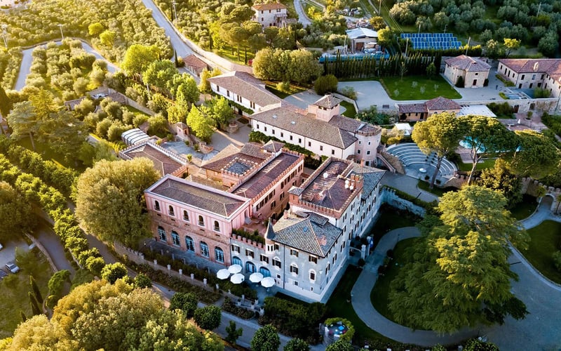 Umbria's largest spa anchors this adults-only retreat in the vineyard-clad hills near Perugia, with treatments designed specifically for couples. Guest rooms reveal exposed wooden beams and open onto private terraces surveying the rolling countryside. At Elementi Restaurant, regional ingredients receive refined interpretation. The atmosphere suits honeymooners and those seeking an intimate escape among Umbrian landscapes.
