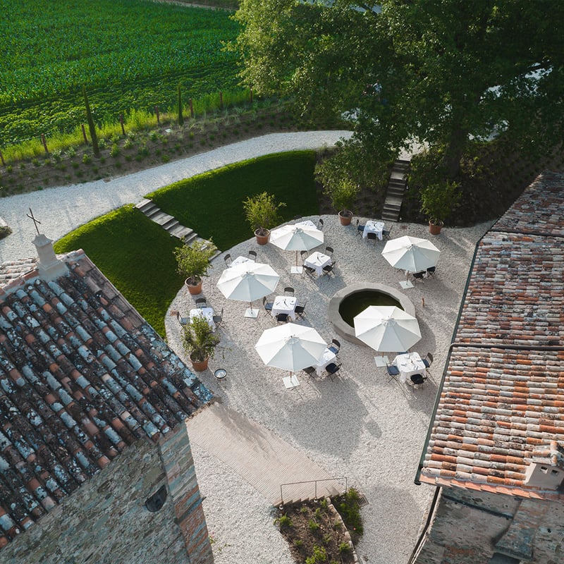 Ancient stone walls from a 12th-century Umbrian monastery frame ultra-modern designer furniture at this adults-only retreat near Perugia. The twelve rooms balance atmospheric heritage with contemporary luxury, while the restaurant pairs creative Umbrian cooking with global accents in an indoor-outdoor setting. A seasonal pool, spa treatments on request, and a bar pouring local wines complete the intimate, design-forward escape.