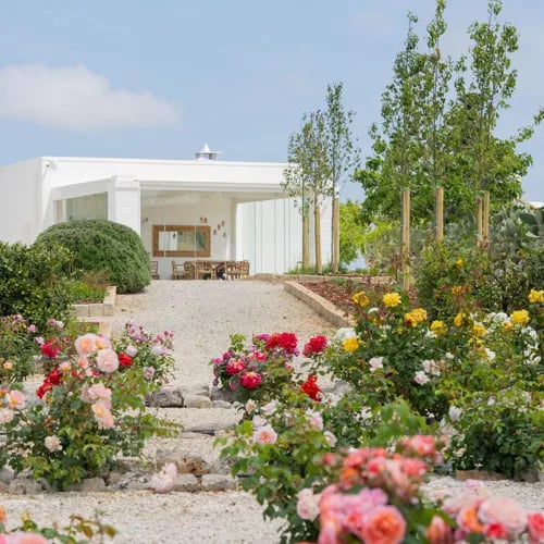 A mile inland from Polignano a Mare, this whitewashed stone farmhouse turned nine-room retreat delivers the quintessential Puglian masseria experience. Olive groves frame the property, while a seasonal outdoor pool offers respite between coastal excursions. Mornings begin with an expansive breakfast; afternoons drift through the gardens. The pet-friendly policy welcomes four-legged companions, appealing to travelers seeking pastoral calm with genuine regional character.