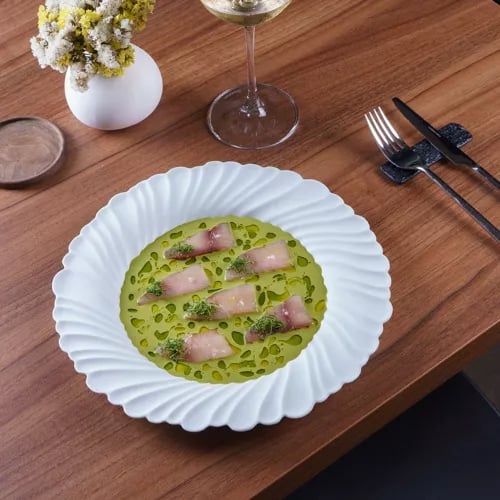 Radimare foregoes the tasting-menu format in favor of à la carte freedom, letting diners chart their own course through modern Mediterranean cooking. Fish and seafood anchor every plate, brightened by judicious touches of citrus and ginger that accent rather than overwhelm. The dining room's contemporary warmth—abundant greenery, natural wood surfaces—mirrors the kitchen's philosophy: seasonal ingredients treated with restraint and respect.