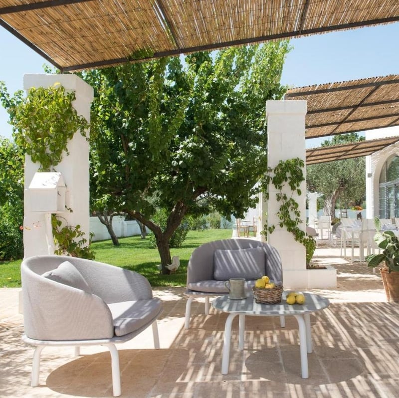 Six centuries-old trulli, converted from a working masseria, compose this intimate retreat in the hills between Fasano and Monopoli. Stone walls and arched ceilings retain their rustic bones, while old mangers serve as sculptural accents throughout. Vineyards and olive groves frame the property; a swimming pool beneath a shaded pergola anchors slow afternoons. Designed for travelers seeking rural Puglia distilled to its quiet, artful essence.