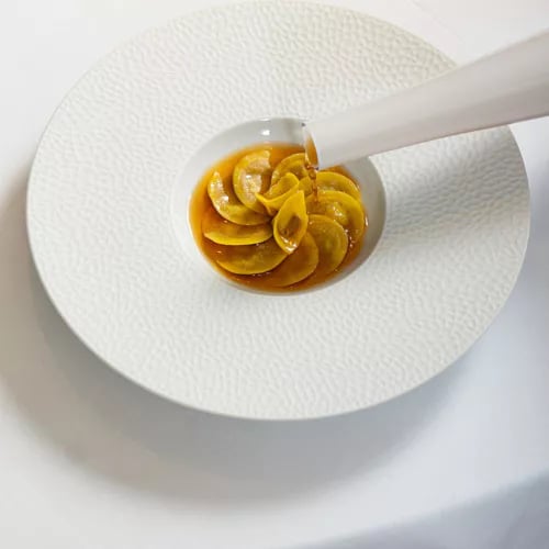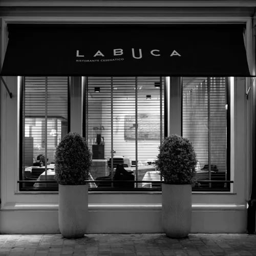 Summer dining reaches its apex on La Buca's terrace, suspended directly above Cesenatico's historic canal port with its colorful period houses reflected in the water below. This one-Michelin-starred kitchen channels the Adriatic through an extensive raw bar and refined compositions like stuffed mullet paired with pickled plums and lemon salad. An impressive champagne list runs deep, matching the seafood-driven menu course for course.
