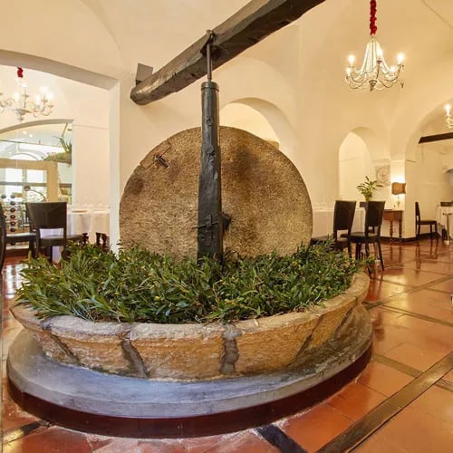 A 17th-century olive oil press provides the atmospheric setting for this seafood-focused table in medieval Finalborgo, where the original stone mill and wooden press remain intact beneath vaulted ceilings. The kitchen works with impeccable local catches—Italian-style ceviche changes daily, while the signature Mare Mare arrives in a fragrant casserole of cherry tomatoes, courgettes, and bay leaves. Refined yet rooted in Ligurian tradition.