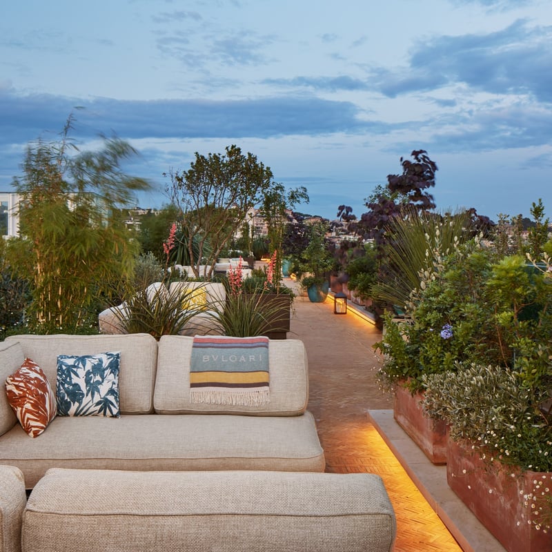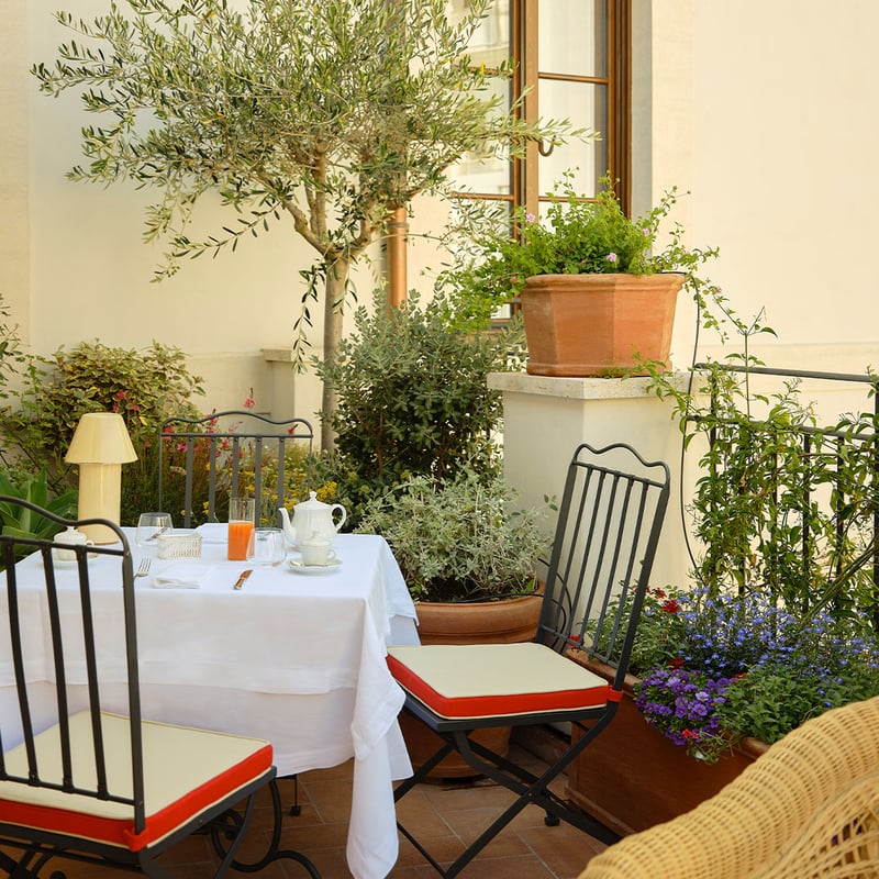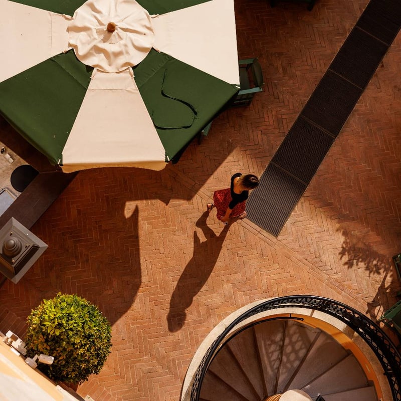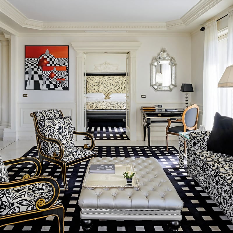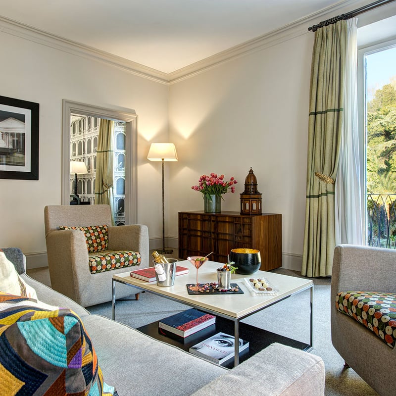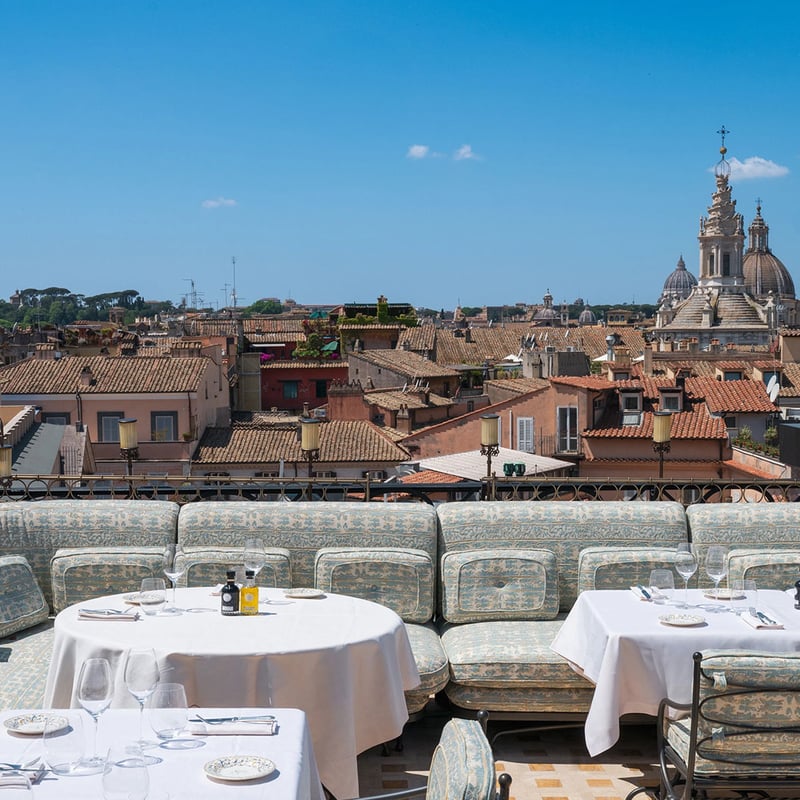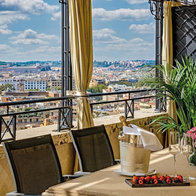 Architect Tommaso Ziffer and Olga Polizzi reimagined this 18th-century palazzo atop the Spanish Steps with handprinted Piranesi-inspired wallpaper and a geometric courtyard designed by George Carter. Fulvio Pierangelini's fine-dining restaurant anchors the culinary program alongside courtyard bistro Mosaico, while the rooftop Cielo Bar captures 360-degree views from the Vatican to the historic center. The Irene Forte Spa uses Sicilian-sourced organic treatments, complemented by Turkish bath and sauna.