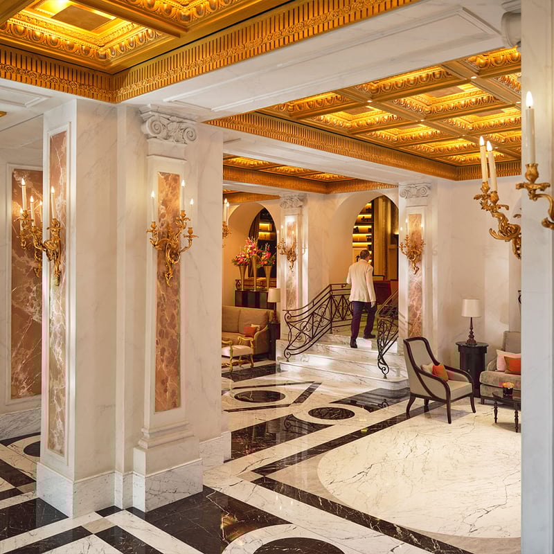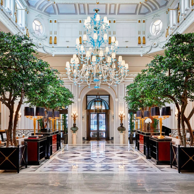 César Ritz launched this palatial landmark in 1894 with a sixteen-course dinner by Auguste Escoffier, setting a standard for Roman luxury that endures 130 years later. Pierre-Yves Rochon's 2018 refresh preserves Murano chandeliers, hand-painted frescoes and an 1874 wrought-iron lift while introducing contemporary art from Continua Gallery and a Bottega Veneta suite. Lumen Bar performs a theatrical sabrage at seven each evening; the 300-square-meter Royal Suite houses heads of state.