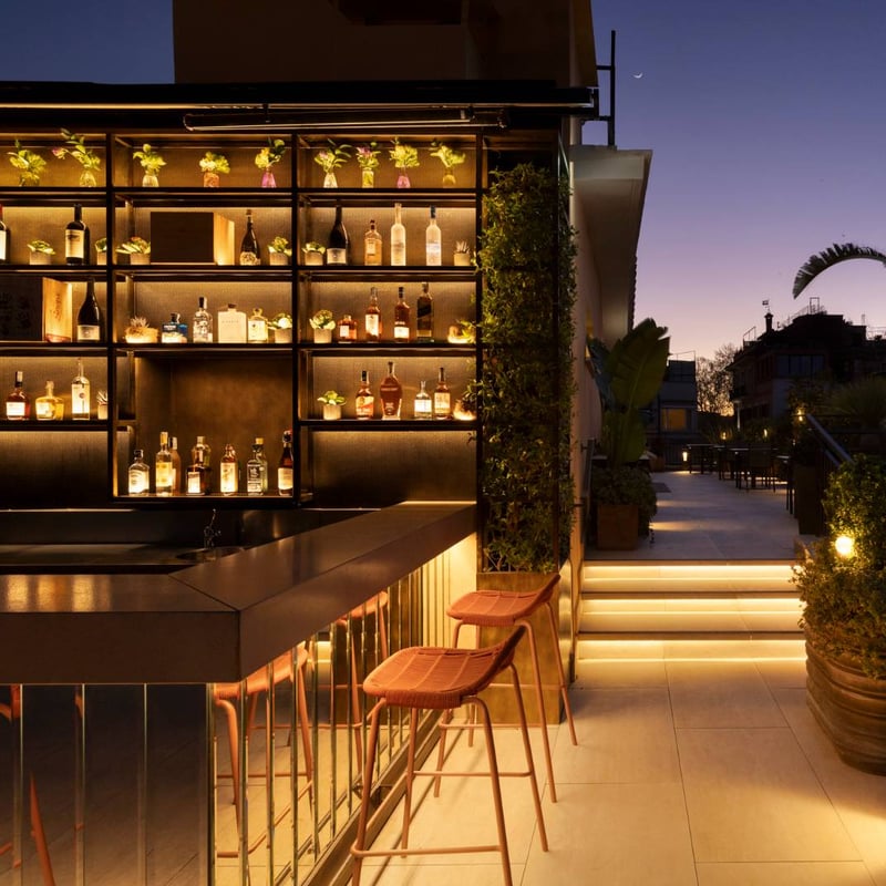 A 17th-century palace reimagined through the lens of 1920s art deco, Palazzo Ripetta showcases beautifully restored curved moldings and inlaid panels alongside an enviable contemporary art collection—works by Andy Warhol, Alberto Burri, and Arnaldo Pomodoro animate the corridors, while a third-century Roman sarcophagus serves as a fountain in the courtyard. San Baylon draws weekend crowds for its Roman-style brunch buffet, and the rooftop terrace Etere pours cocktails against city panoramas.