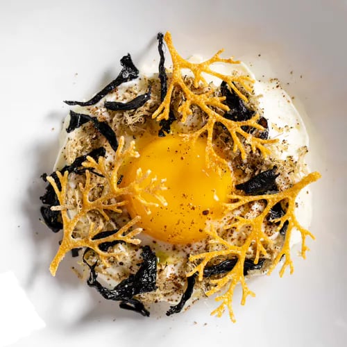 Daniele Lippi helms this two-Michelin-starred contemporary dining room near Piazza del Popolo, housed within The First Roma hotel and dressed in graduated shades of blue. Two tasting formats anchor the menu: a fish-focused sequence starring an inventive cuttlefish dish infused with Turkish influences, and a more expansive option layering in meat courses. Lippi's cooking runs hearty and generous despite its creative technique, and the cellar stocks over a thousand labels to match the richly textured fare.