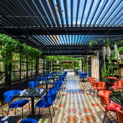 Few dining rooms command such theatrical placement: Aroma's rooftop terrace faces the Colosseum head-on, with the Domus Aurea flanking the scene. Chef Giuseppe Di Iorio anchors his one-Michelin-star kitchen in Roman tradition while drawing on Campania's coastal influence, offering four tasting menus—including a vegetarian progression—that guests can deconstruct à la carte. The covered terrace ensures year-round access to this monumental panorama.