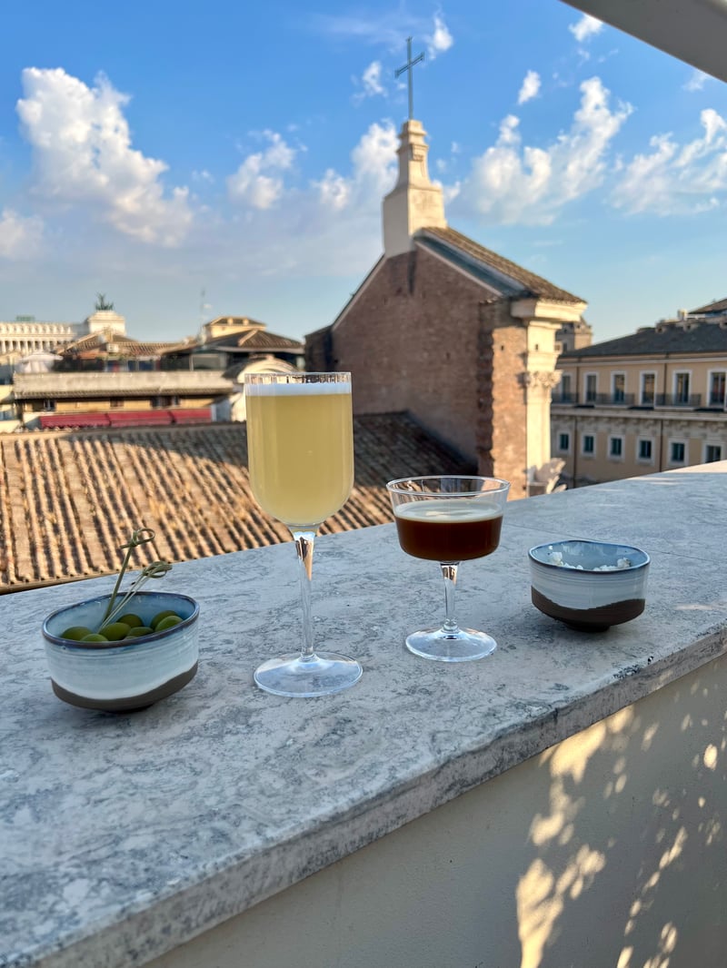 Six Senses Rome is located in the Palazzo Salviati Cesi Mellini, a 15th-century palace that has retained all its splendor after meticulous restoration. While the exterior remains faithful to its history, the interior, imagined by designer Patricia Urquiola, skillfully combines modernity and tradition. The 96 rooms and suites, bathed in natural light, offer exceptional comfort, as does the spa—a true haven of well-being inspired by Roman baths. The hotel offers several restaurants, including the BIVIUM Restaurant-Café-Bar which focuses on modern, sustainable, and local Italian cuisine. The NOTOS rooftop, meanwhile, offers breathtaking views of the city. That's where we chose to dine, enjoying the elegant ambiance and the exceptional view of Rome.