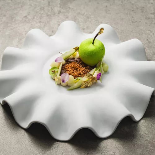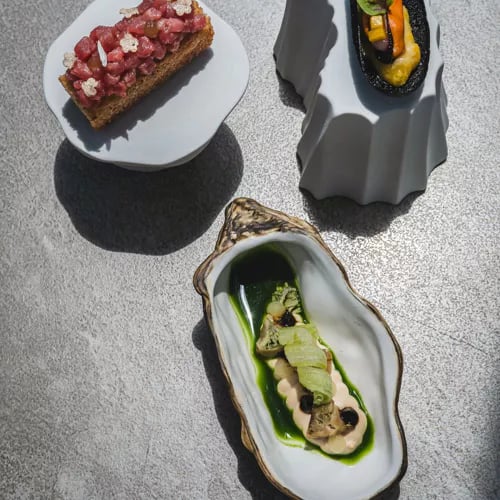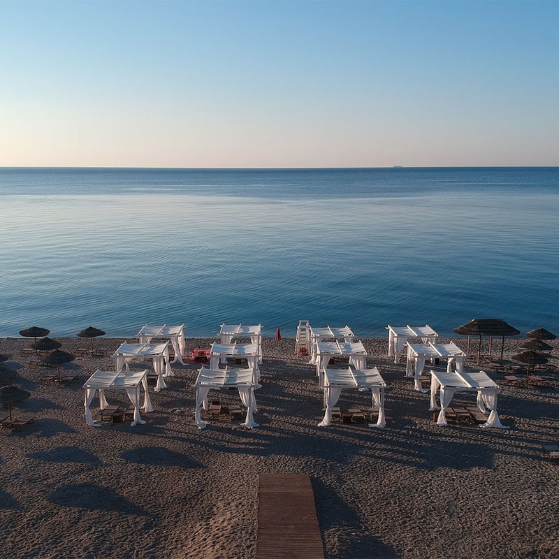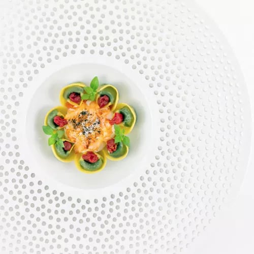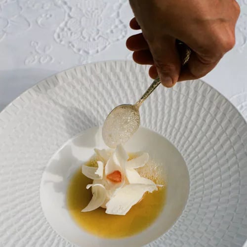 Waves break just beneath the gazebo at Blum, where diners sit close enough to count each crest rolling onto the beach. The kitchen channels Sicilian tradition through a contemporary lens, presenting both land and sea in compositions of vivid color and local provenance. Tasting menus—including a dedicated vegetarian sequence—unfold with polished service, while an elegant indoor room offers refuge when weather turns.