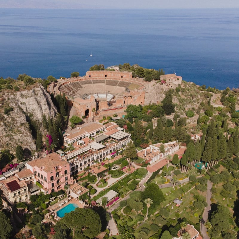 Perched beside Taormina's ancient Greek amphitheater since 1873, this Belmond landmark commands six acres of tiered Mediterranean gardens where Mount Etna looms over a heated pool that doubles as an open-air gallery. Each room opens onto private balconies framing sea and volcano, while the Otto Geleng restaurant delivers refined Sicilian plates against panoramic backdrops. The literary terrace — once frequented by D.H. Lawrence and Tennessee Williams — remains an aperitivo ritual for aesthetes seeking theatrical grandeur.