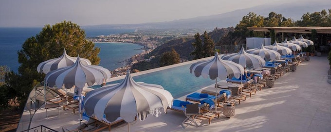 The Quartucci family has run this 19th-century hillside villa for decades, and their personal touch shows in every detail—handpicked antiques, breezy interiors, terraces facing the Ionian Sea and Mount Etna. Mornings begin with rooftop breakfast; evenings end with Sicilian dinners under the stars. With just 28 rooms, gardens, and a pool, it suits travelers seeking intimate Mediterranean glamour over grand-scale luxury.