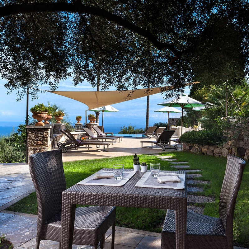 An 1860 aristocratic villa turned intimate 24-room retreat, Villa Carlotta commands sweeping views of the Mediterranean and Mount Etna from its hillside perch above Taormina. Period antiques share space with contemporary design, while the panoramic terrace restaurant serves organic Sicilian dishes by candlelight. Gardens, an outdoor pool, and the coveted two-storey Tower Suite reward travelers seeking refined seclusion minutes from the centro storico.