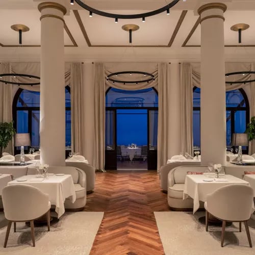 Two Michelin stars shine over this collaboration between Heinz Beck, the celebrated three-starred chef, and Calabrian-born Salvatore Iuliano, whose Mediterranean cooking pulses with southern Italian passion. The setting matches the ambition: an early-twentieth-century villa where a palm-fringed terrace opens onto the Straits of Messina. For travelers seeking Taormina's most refined table, few addresses compete.