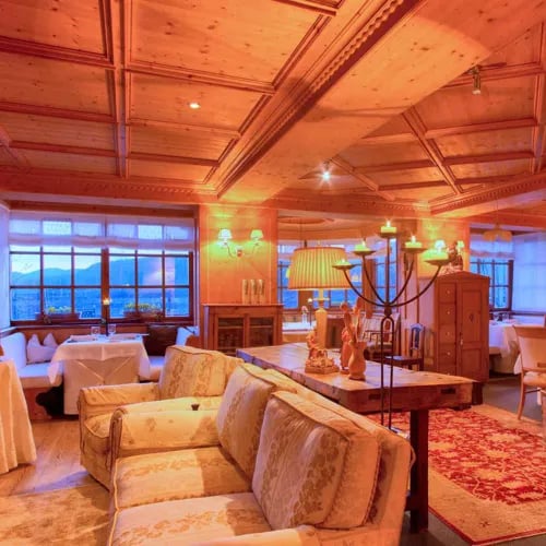 A cluster of contemporary alpine chalets forms its own secluded hamlet in Vierschach, centered around communal gardens and a refined wellness pavilion featuring sauna, Turkish bath, and twin pools—one beneath open sky, one sheltered. Families find particular appeal: a dedicated kids' club, game room, and on-site ski rental streamline mountain days. The romantic dining room serves modern cuisine to close each alpine adventure.