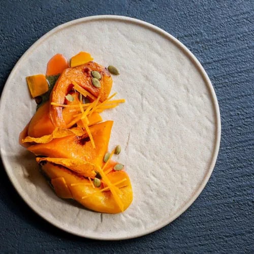 Emanuele Scarello's two-star kitchen draws from Friuli-Venezia Giulia's crossroads of cultures and terroirs—pastureland, alpine slopes, market gardens—to compose dishes of exacting artistry. His signature reimagining of butter-and-sage through Godia potatoes, fermented turnips, and apple exemplifies the approach. Two tasting menus, including a vegetarian sequence, alongside beloved à la carte classics; Michela's polished yet warmly familial service completes the picture.